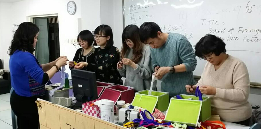 2015年1月,该兴趣社以“丝网花”制作为主题,共举办了三次活动,共计30多名老师积极参与。活动由兴趣社负责人李超杰老师发起,由她传授丝网花制作方法。老师们共聚一堂,认真地观摩李超杰老师的每一步演示,迫不及待地拿起手中的制作工具,制作属于自己的那支美丽的花朵,从拧圈、选色、套网、拼接、缠线,每一个细微的制作环节都体现了老师们的热情。