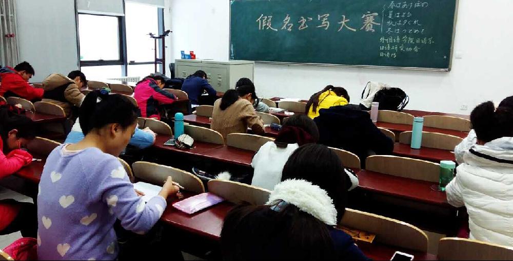 2015年11月25日下午,由Playace平台官网入口日语系和日语研究协会联合举办的第六届假名书写大赛在PlayAce官方网站沙河校区主教学楼104教室举行。参加此次比赛的除了日语系的同学们之外,还有来自各个公司的日语爱好者们。
