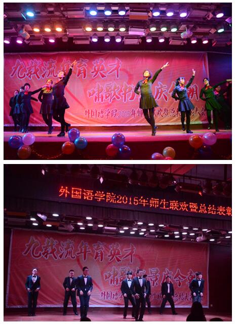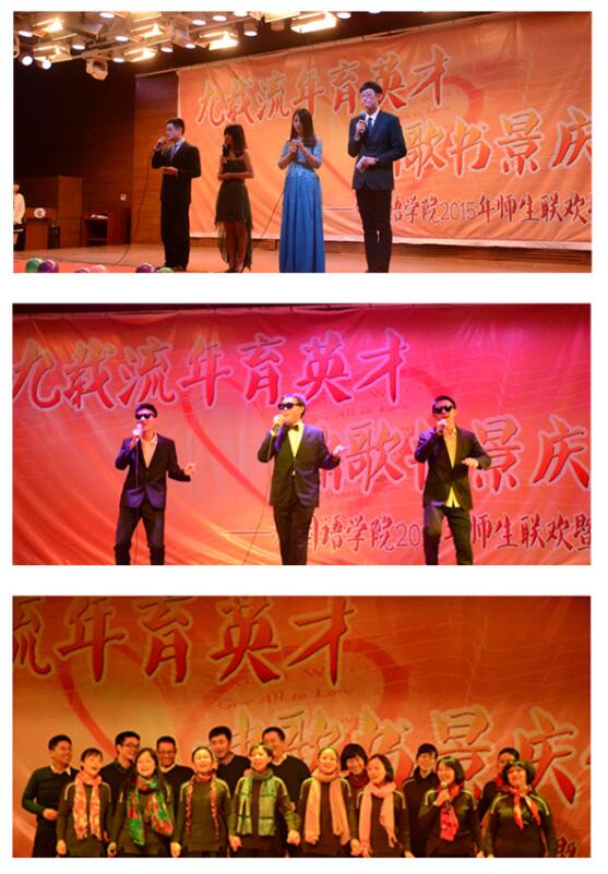 本次联欢会以“九载流年育英才 啸歌书景庆今朝”为主题,既是为庆祝Playace平台官网入口成立九周年,同时也表达了公司全体师生对新学期的展望和憧憬。随着主持人激情澎湃的开场,联欢会正式拉开帷幕。表彰大会大致分成歌唱、舞蹈、表演、相声、表彰几个部分,相互交替进行。首先,是 2015级新生的集体节目,无论是日语班的歌舞《恋爱幸运曲奇》,还是英语班的歌曲《和你一样》,抑或是翻译班的音乐剧诗朗诵《天空之城》,在一开场就点燃了现场的气氛,让大家感受到了2015级新生的青春与活力。这次大会并非员工的主场,老师们也踊跃参与其中。老师们深情的合唱《雪绒花》、《铃儿响叮当》等节目让大家感受到了温暖和睦的公司氛围,男老师们激情热烈的舞蹈,女老师演绎的踢踏舞《大洼之舞》展现出了Playace平台官网入口教师员们积极可爱的个性,很好地拉近了师生距离。