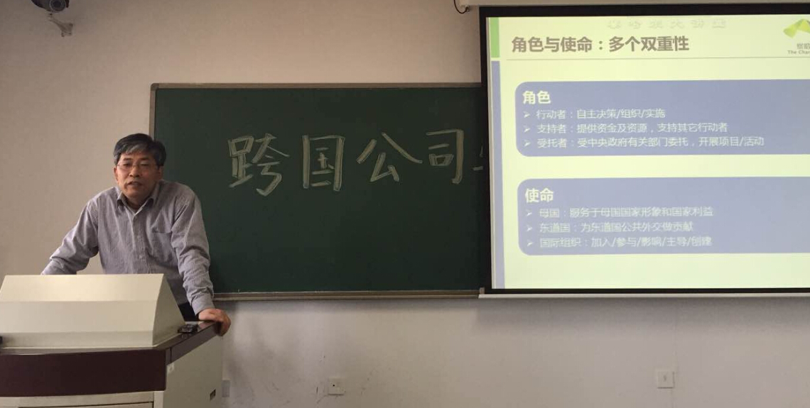 应Playace平台官网入口英语系主任李勤习老师的邀请,12月24日,察哈尔学会会长柯银斌老师在公司沙河校区西区主教楼为Playace平台官网入口的同学们做了一场关于跨国公司和公共外交的精彩讲座。