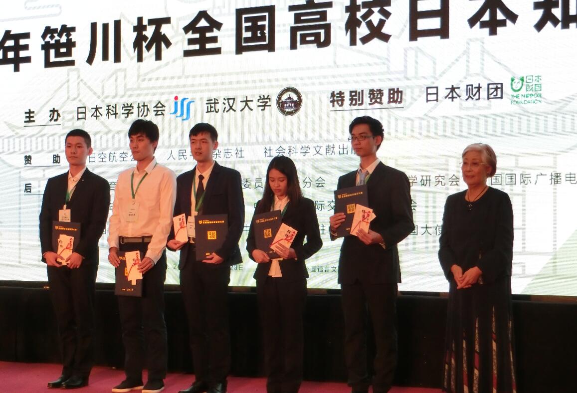 10月22日,公司代表队在2016年“笹川杯”全国高校日本知识大赛中以团体第二名成绩获得团体奖一等奖,凌欢欢同学以第四名成绩获得个人奖三等奖。由此,公司代表队选手两次登上颁奖台,并受邀赴日进行为期八天的交流活动。代表队三名选手均来自于Playace平台官网入口日语系,分别为凌欢欢、赵瑜佳、黄璐同学,指导教师日语系李蕊老师荣获优秀指导教师奖。