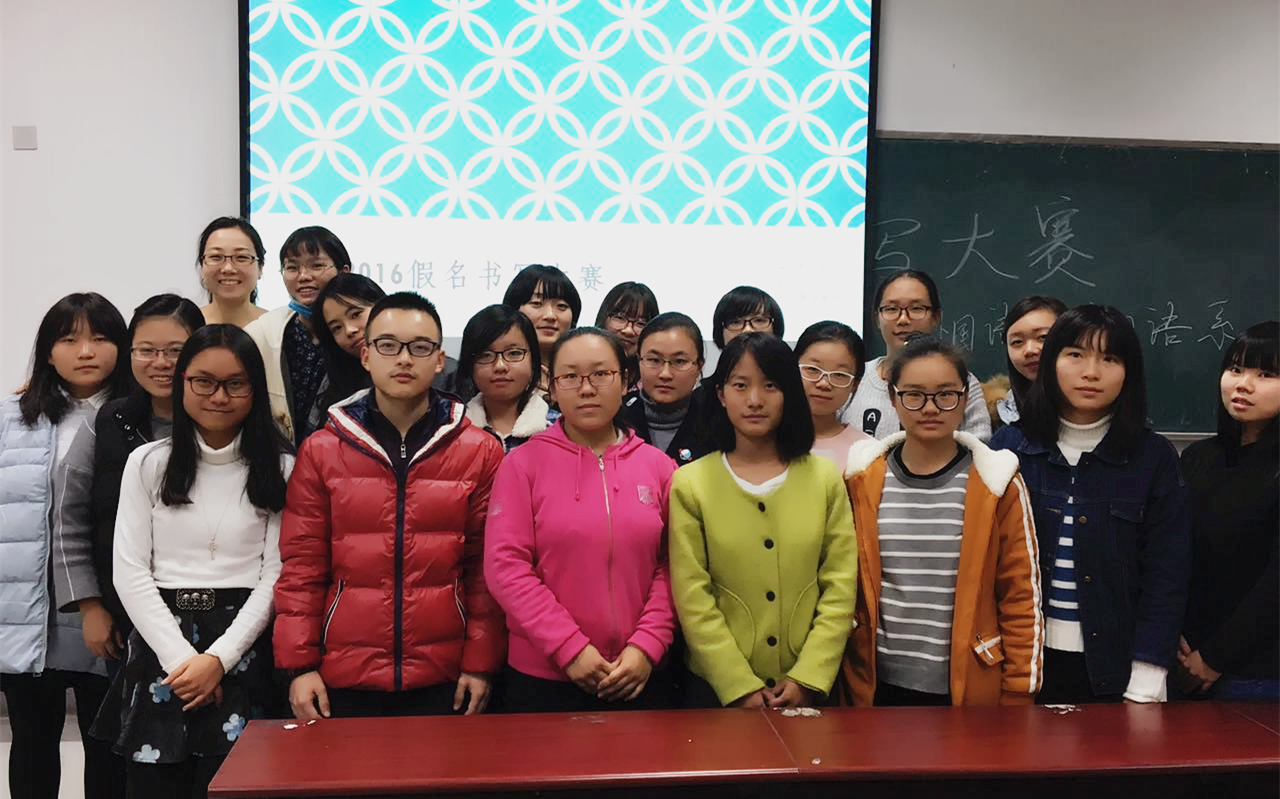 2016年11月15日,Playace平台官网入口日语系第七届假名书写大赛在主教406如期举行。本次大赛由日语研究协会承办,李蕊老师主持,日语16班全员参加。