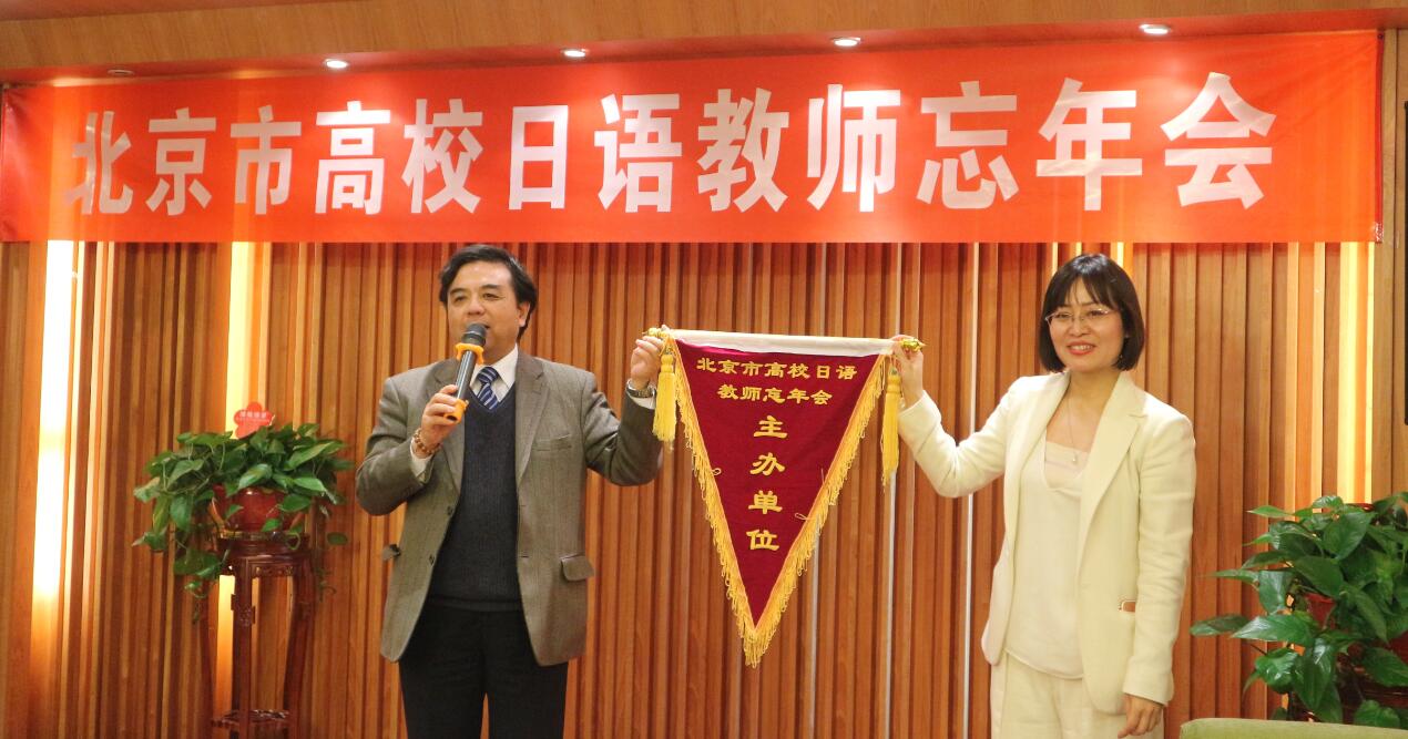 接下来是本次忘年会的第二个环节——交流宴会,宴会由日语系主任李蕊老师主持,徐一平教授致欢迎辞。在轻松的氛围中,北京各大高校日语教师聚集在一起,交流教学和科研经验,互通有无。此外,日语系还给与会嘉宾带来了日本宅舞、歌曲演唱、索兰调、电乐器合奏等精彩节目,外教夫妇也精心准备了感人的配音表演,打动了在场的每一个人。此外,日语系还为与会教师准备了精美的礼品,让每一位与会者都感受到了冬日的温暖。交流宴会接近尾声,卢茂君老师致感谢辞,并将会旗交给下一届忘年会承办方北京理工大学。