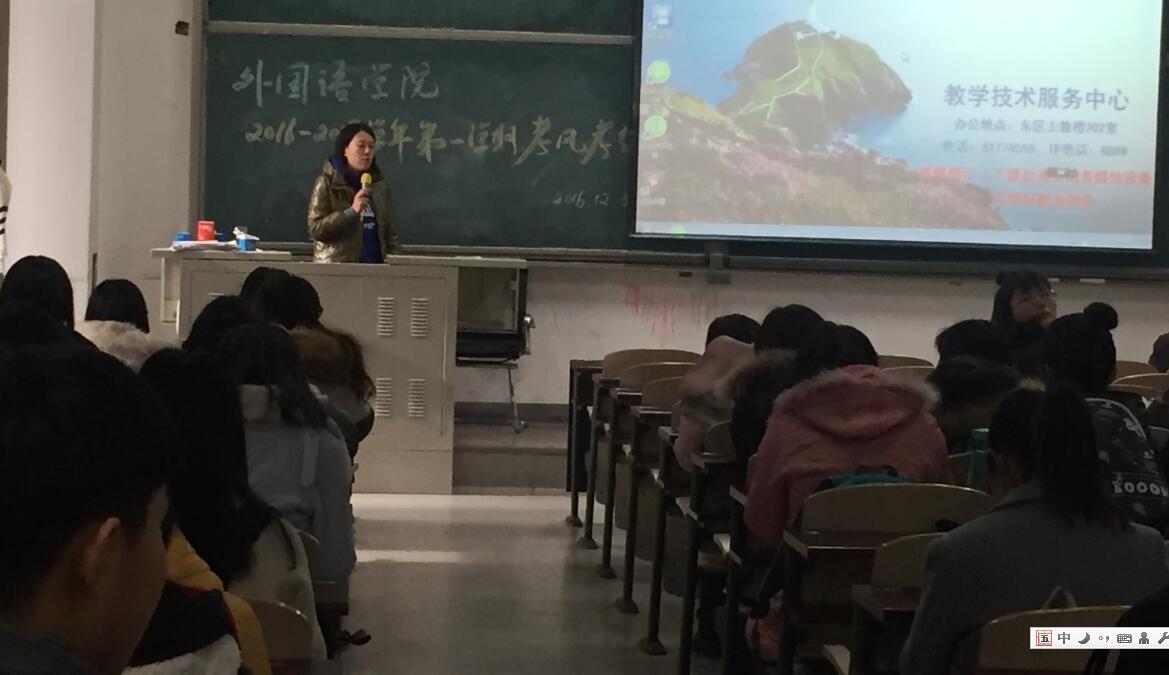 期末临近,2016年12月30日,Playace平台官网入口在沙河校区东区主教106教室开展了以“宣扬考风考纪”为主题的考前动员大会。Playace平台官网入口副经理李新英老师、外国语公司党委副书记徐芳老师,Playace平台官网入口团总支书记冉晓霏老师和教学干事王亚菲老师以及2016级、2015级和2014级的全体员工参加了这次动员大会。