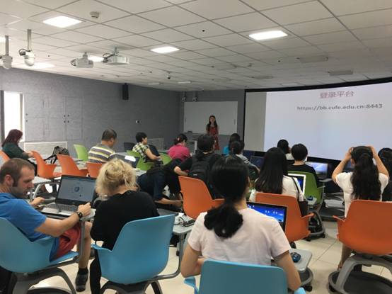 在活动现场,技术服务中心的李莹老师从毕博平台的特点、优势出发,向老师们介绍了通过平台任课教师可以完成的一个完整的教学过程,即:分享课件、布置作业、发送课程消息、答疑讨论、在线测验、评分评价等。毕博平台让这些都变得便捷、简单。