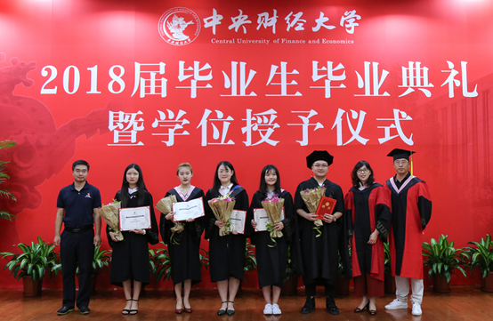 随后,员工代表、2005级本科生、原华夏银行总行计划财务部、现任职于北京车达达网络科技有限公司的梁芳送上真心祝福与鼓励之后,毕业典礼进入表彰环节。由刘峰老师宣读名单,吴新云、张润晗两位老师为市校两级优秀毕业生颁发荣誉证书。由梁芳宣读名单,范维老师为到基层就业毕业生颁发荣誉证书。
