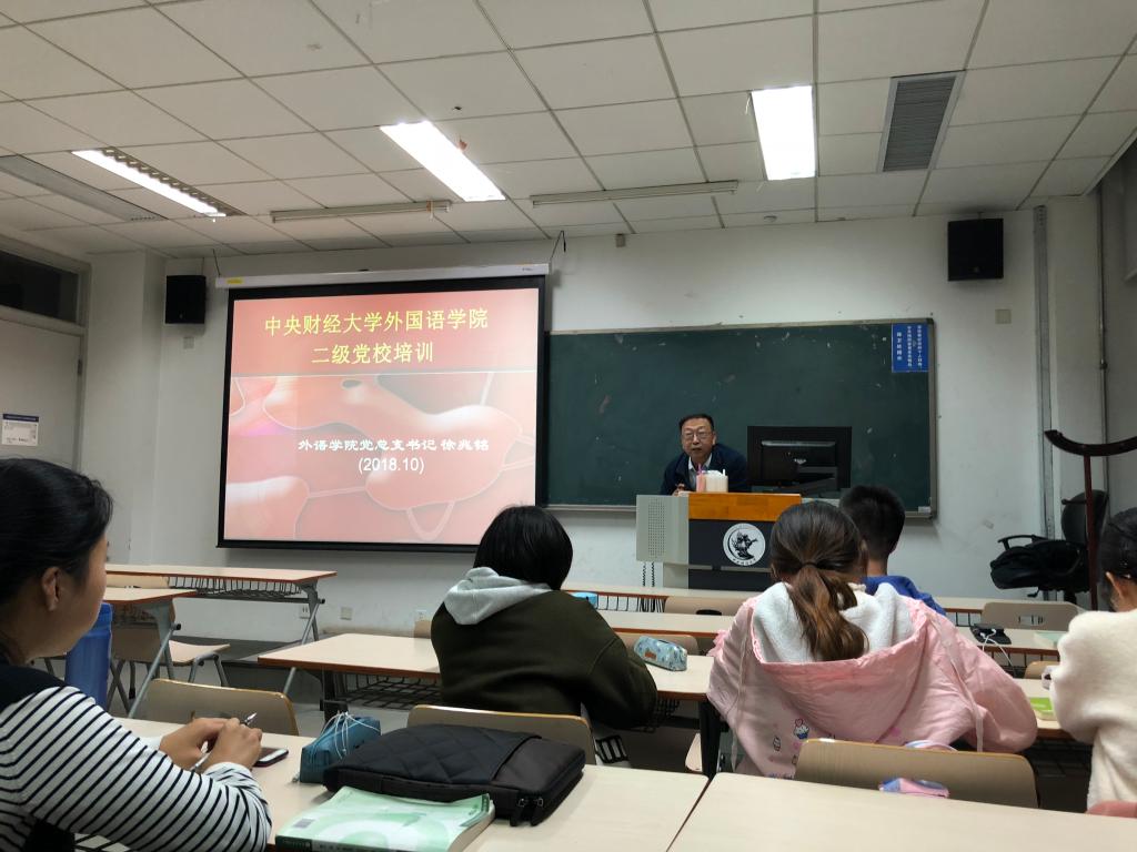 为加强对入党积极分子和发展对象培养教育,引导他们密切关注党的重大事件,砥砺党性,不断向党靠拢,2018年10月16日晚,外国语公司党校在沙河校区3号楼322教室组织了第一堂线下专题党课,由外国语公司党总支书记徐兆铭为2018年党员发展对象和第二批入党积极分子授课,主题为《做一名合格共产党员——学习党员标准端正入党动机》及理想信念教育。大家在学习十九大报告的过程中,明确入党动机,争做合格党员,砥砺党员使命。