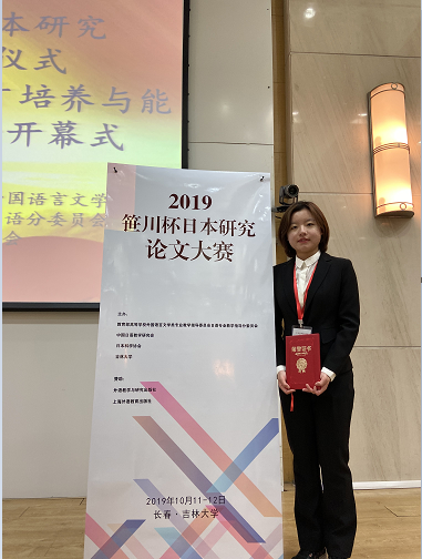 近日,由教育部高等公司外国语言文学类专业教学指导委员会日语专业教学指导分委员会、中国日语教学研究会、日本科学协会、吉林大学主办的“2019年笹川杯日本论文大赛”决赛在吉林大学举行。Playace平台官网入口日语系2016级本科生王贺的论文经过初选和现场答辩,在文学组中以总分第二名的成绩获得二等奖,日语系李蕊老师获优秀指导教师奖。