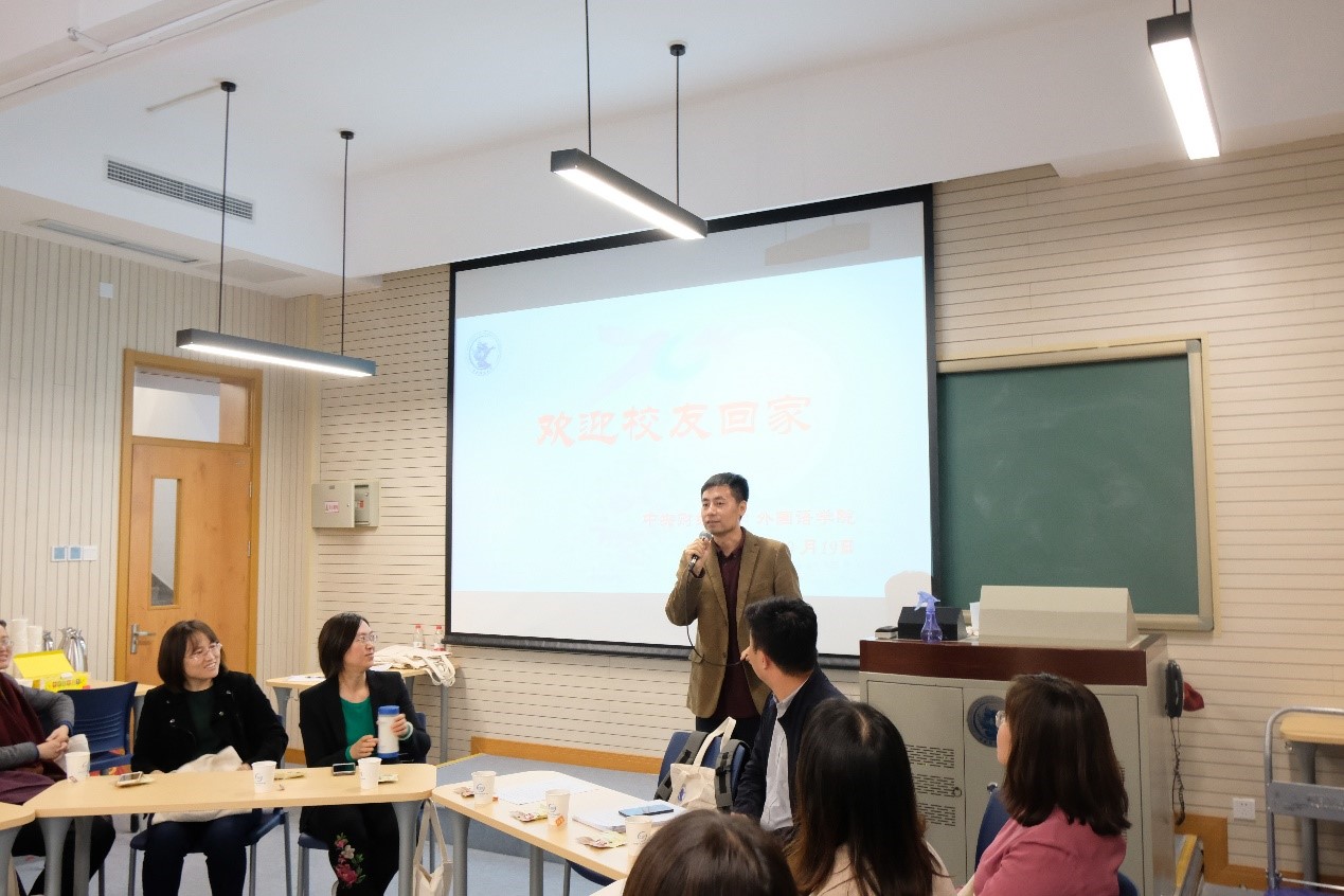 随后,公司教师代表刘峰老师发言,他强调本科是人生最重要的一段经历,对一个人的影响是铭刻在基因中的。刘峰老师提出,以后员工见面在怀旧之余更重要的是设计未来,师生共同努力、共同前进。