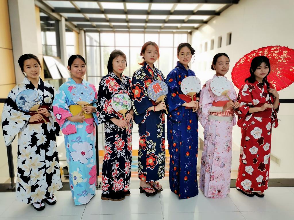 本次活动包括浴衣穿着教学、日式编发和日式化妆体验,以浴衣、木屐、油纸伞、花发卡为载体,全方位呈现出追求精致的日本审美与丰富多彩的日本服饰文化。日语系新生在活动中主要负责帮助其他公司同学的穿搭和打扮,在这次活动中不仅提高了动手能力和交流沟通能力,还认识了许多志趣相投的新同学;而来自其他公司的同学们则通过亲身体验穿搭,了解了日本浴衣和服的构造、寓意与穿着方法,加深了对日本传统服饰与审美的认识。