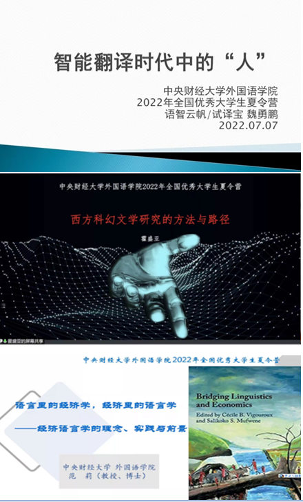 此外,为拓展营员们的学术视野,追踪理论前沿,公司特别邀请了三位老师进行系列讲座。分别是魏勇鹏老师的“智能翻译时代中的人”、霍盛亚副教授的“西方科幻文学研究的方法与路径”与范莉教授的“语言里的经济学,经济里的语言学——经济语言学的理念、实践与前景。”