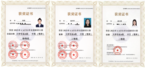 本次“CATTI杯”全国翻译大赛的主题是用外语讲述真实、立体、全面的中国,意在贯彻落实中央有关部门关于加强翻译人才队伍建设的精神,加强中外文化交流合作,通过赛事选拔更多优秀翻译人才,提升我国国际传播能力,加强中外青少年文化交流,培养一批适应新时代国际传播需要的专门人才队伍。本次大赛分为大学组、社会组、境外组三个组别,英、日、韩、俄4个语种及口译、笔译2个类别,报名人数达到8.3万人,参赛人数在全国翻译类赛事中位列榜首。大赛从5月初赛开始,就得到了业界的广泛关注,8.3万名来自国内外高校的翻译爱好者、社会职场人士、外籍选手们同台竞技,共同打造国内翻译赛事竞技的最高舞台。此次获奖的三名同学积极备赛,唐文博同学每天坚持翻译练习和单词背诵,积累固定句型和专业术语,选取相关公众号推文进行中日互译。赵时笑同学日常保持熟悉单词和阅读外刊的习惯,为比赛打好了基础。一路挺进决赛并斩获特等奖的邹雪同学平时就注重与社会热点相关的知识积累,如宝可梦游戏、非物质文化遗产等,为获得佳绩奠定了良好的基础。